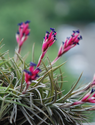 Ora ho una bella collezione di piante del genere Tillandsia che prosperano e fioriscono insieme ad alcune piante di orchidea.